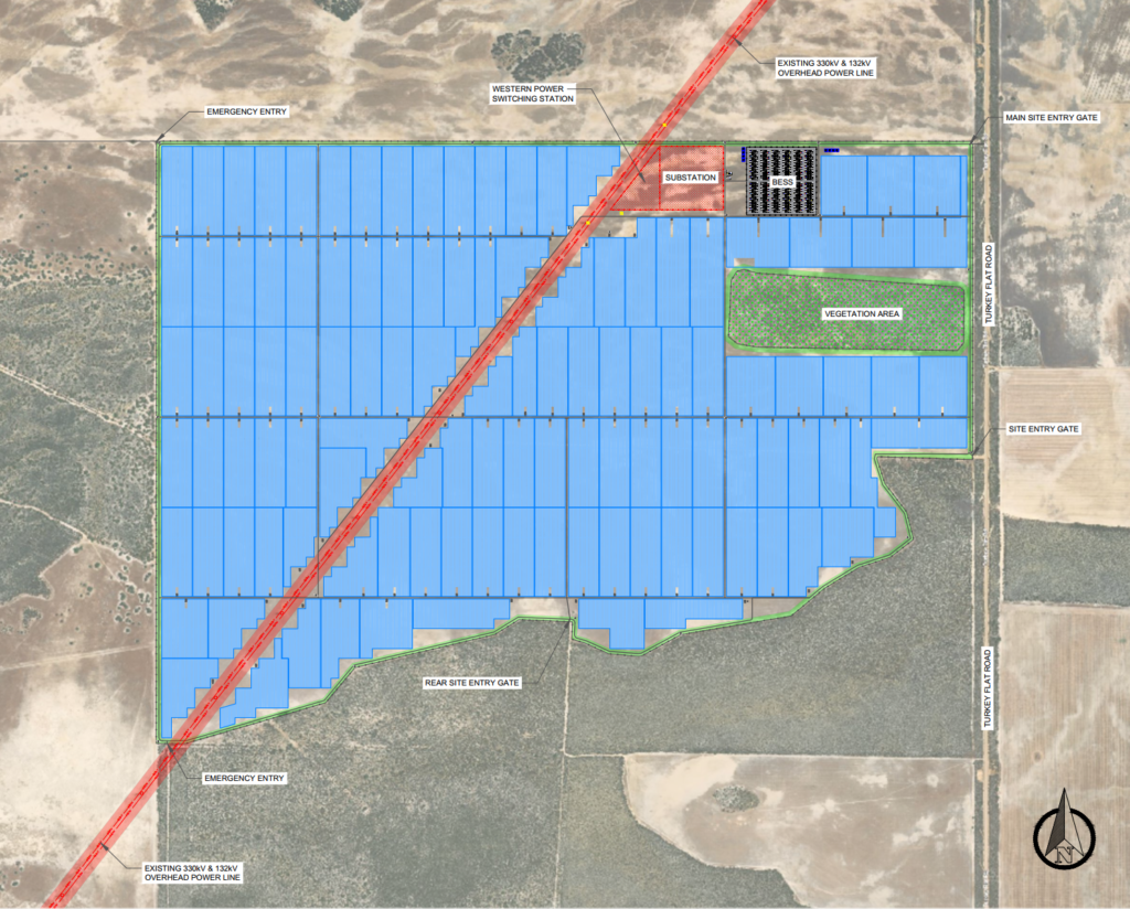 The Three Springs Hybrid Project is situated at 3688 Eneabba-Three Springs Road in Kadathinni, approximately 25 kilometers southwest of the town of Three Springs.